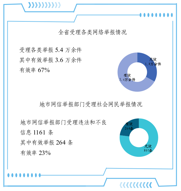 9月,河南省各级网络举报部门认真履责,积极受理处置网上违法和不良信息,持续营造良好网络生态。本月全省累计受理各类网络举报5.4万余件,其中有效举报3.6万余件,有效率67%。指导地市网信举报部门受理社会网民举报违法和不良信息1161条,其中有效举报264条,有效率23%。“郑州彩通科技股份有限公司”“新郑市勇丰机械设备有限公司”等2家属地网站因传播色情类有害信息被网民举报。经核查,情况属实且存在虚假ICP备案、违规境外网络接入等违法违规行为,被依法采取注销网站备案等处置措施。某公司举报称,我省某网站发布的《股价翻倍高管减持,累亏50亿的XX医药离盈利还有多远?》一文存在事实性错误,侵害企业名誉权。根据举报提供的佐证材料,研判认为证据充足且情况详实,已依法依规督促平台删除侵权信息。感谢广大网友对河南省网络举报工作的支持,欢迎您继续向河南省互联网违法和不良信息举报网站举报河南属地互联网平台存在的违法和不良信息,共同维护清朗网络空间!