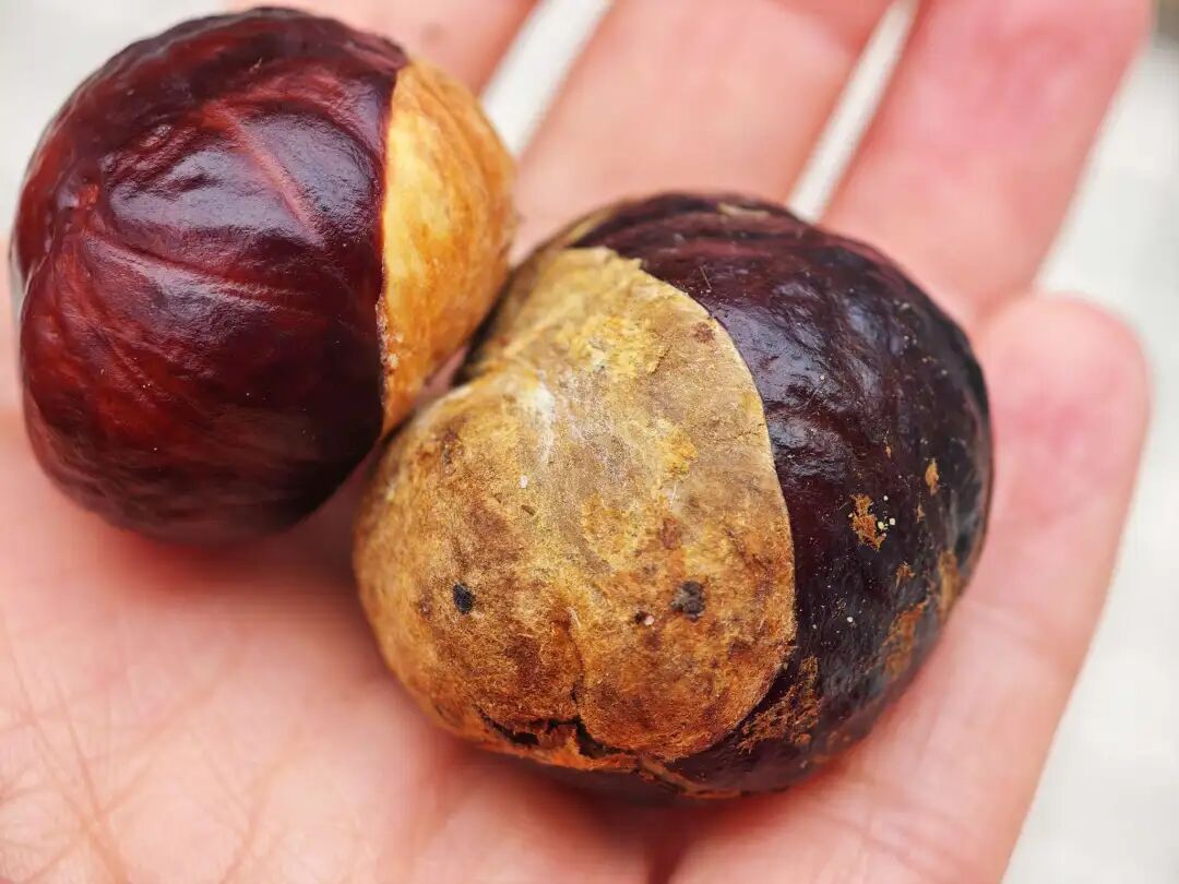 其次是看外壳,板栗外壳上的刺又密又长,而马栗的外壳比较光滑。
