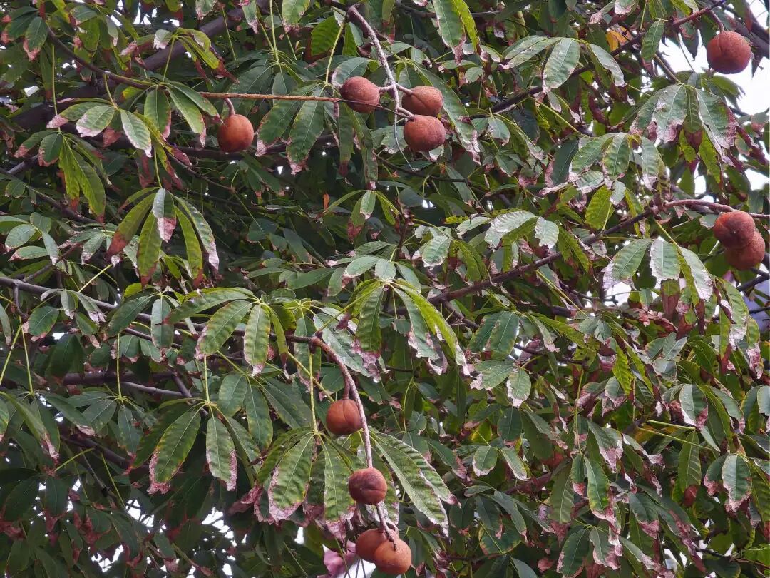 当前这个时节,市区春秋广场、八龙游园、中央公园等地的七叶树枝头挂满了圆滚滚的果实,秋风一吹便簌簌掉落,乍一看和咱们常吃的板栗颇为相似。不过,这种长相“呆萌”的小家伙可不能随便捡来尝鲜!据文献记载,七叶树属植物大多全株有毒,嫩芽和成熟的种子毒性较大,贸然食用易引发中毒!