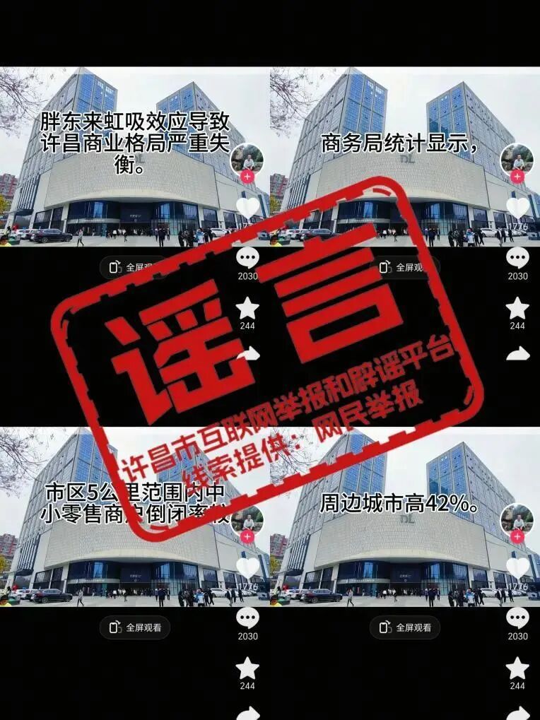 针对网传“胖东来虹吸效应导致许昌商业格局严重失衡”的谣言,许昌市委网信办核查为不实信息后,及时进行辟谣,还原事实真相。公安机关已对违法违规账号主办者进行训诫,当事人主动删除相关不实信息。