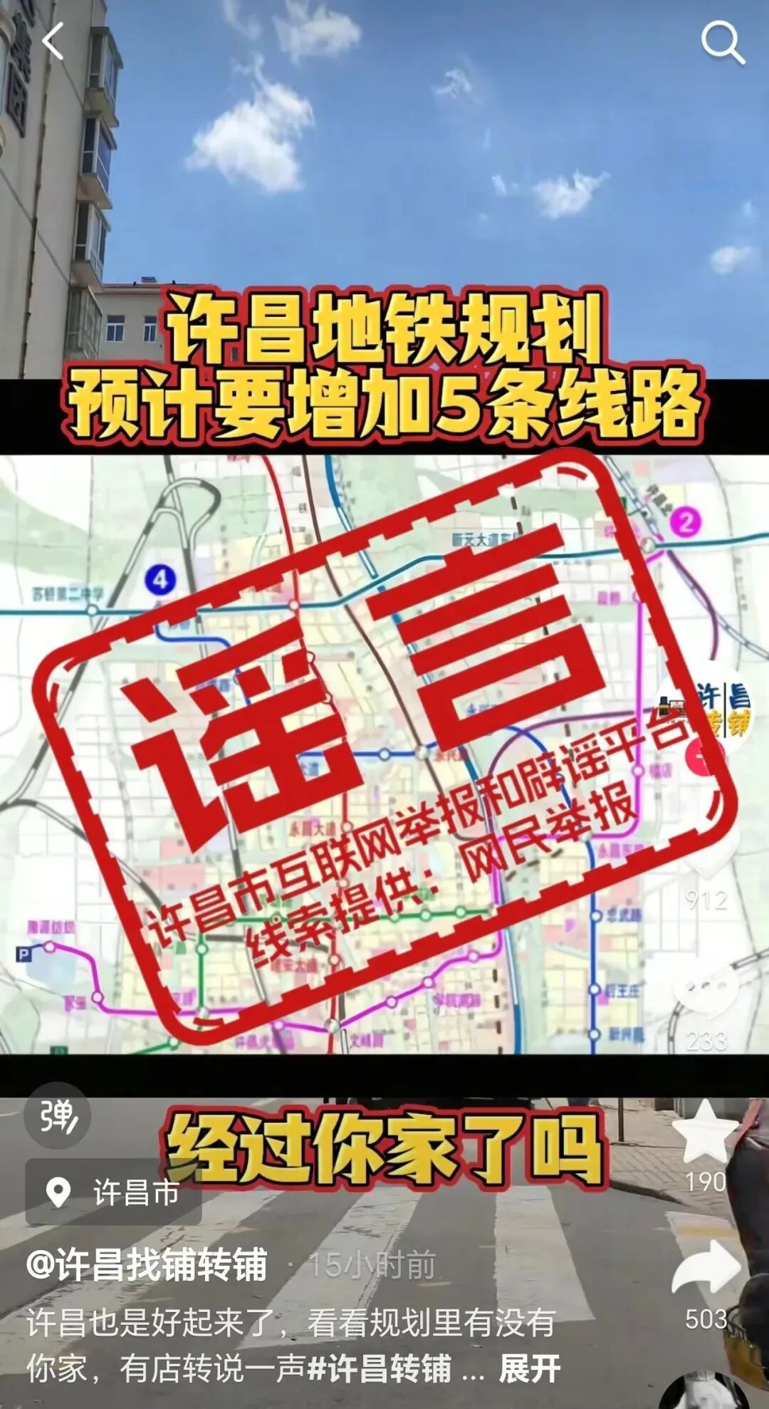 针对网传“许昌地铁规划预计要增加5条线路”的谣言,许昌市委网信办核查为不实信息后,及时进行辟谣,发布澄清地铁规划的严谨流程,并提示公众不信谣、不传谣,共同维护良好信息环境。
